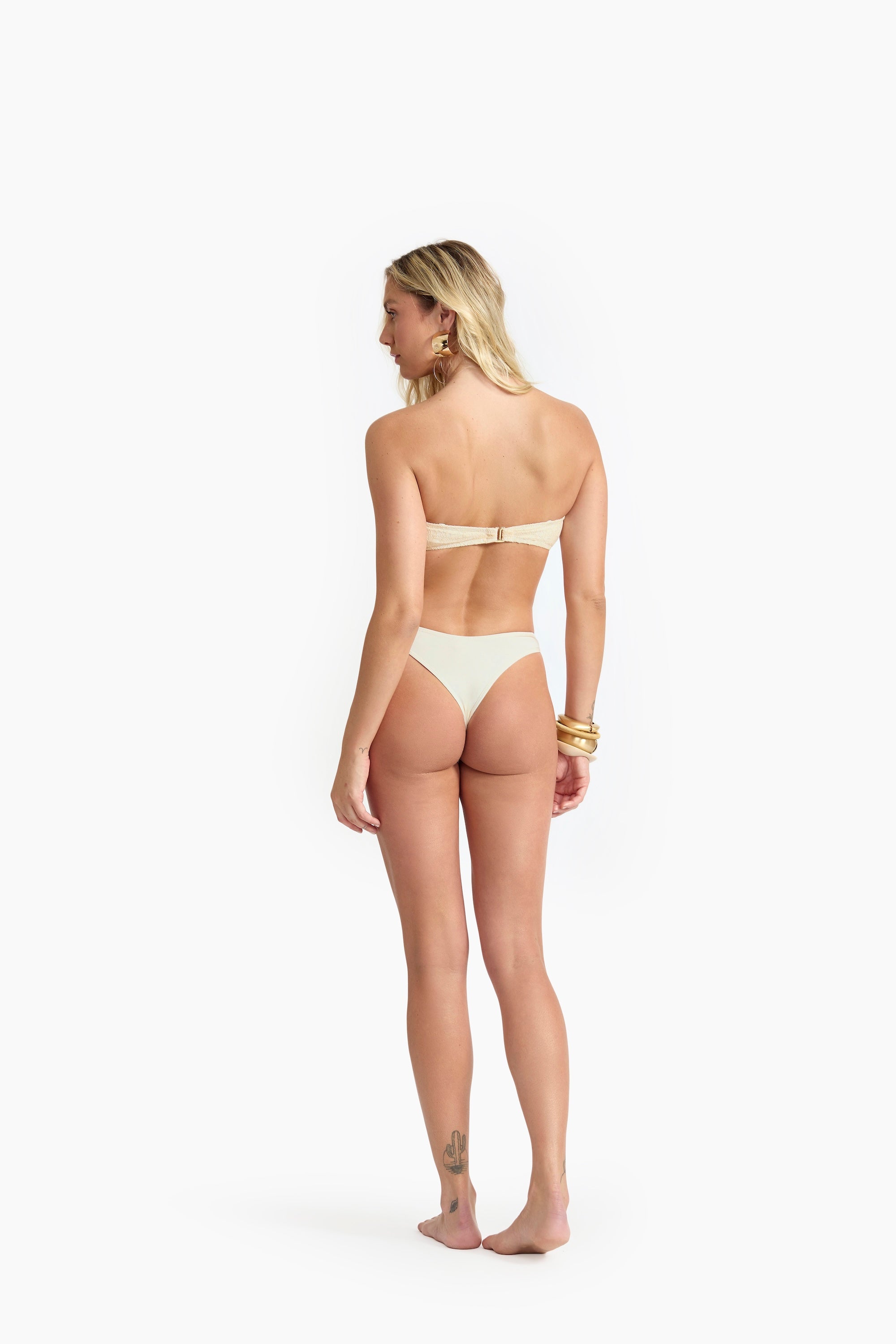 A Calcinha Luar reflete o brilho suave da lua sobre o mar, traduzindo leveza e sensualidade em uma peça atemporal. Feita em malha acetinada, apresenta leve brilho perolado que captura a essência da coleção.